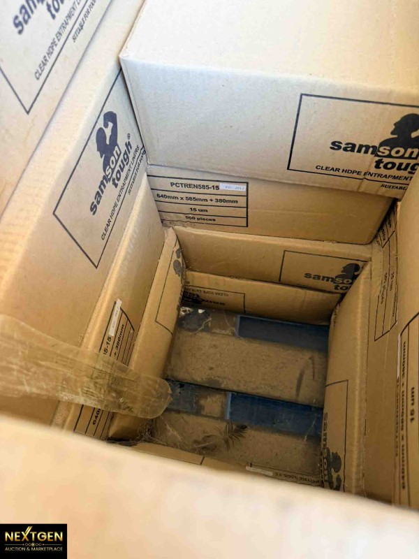 Pallet containing plastic bags - Samson Tough 640mmx585x380mm (15UM) 500 pieces per box.  Sold as Pallet lot.