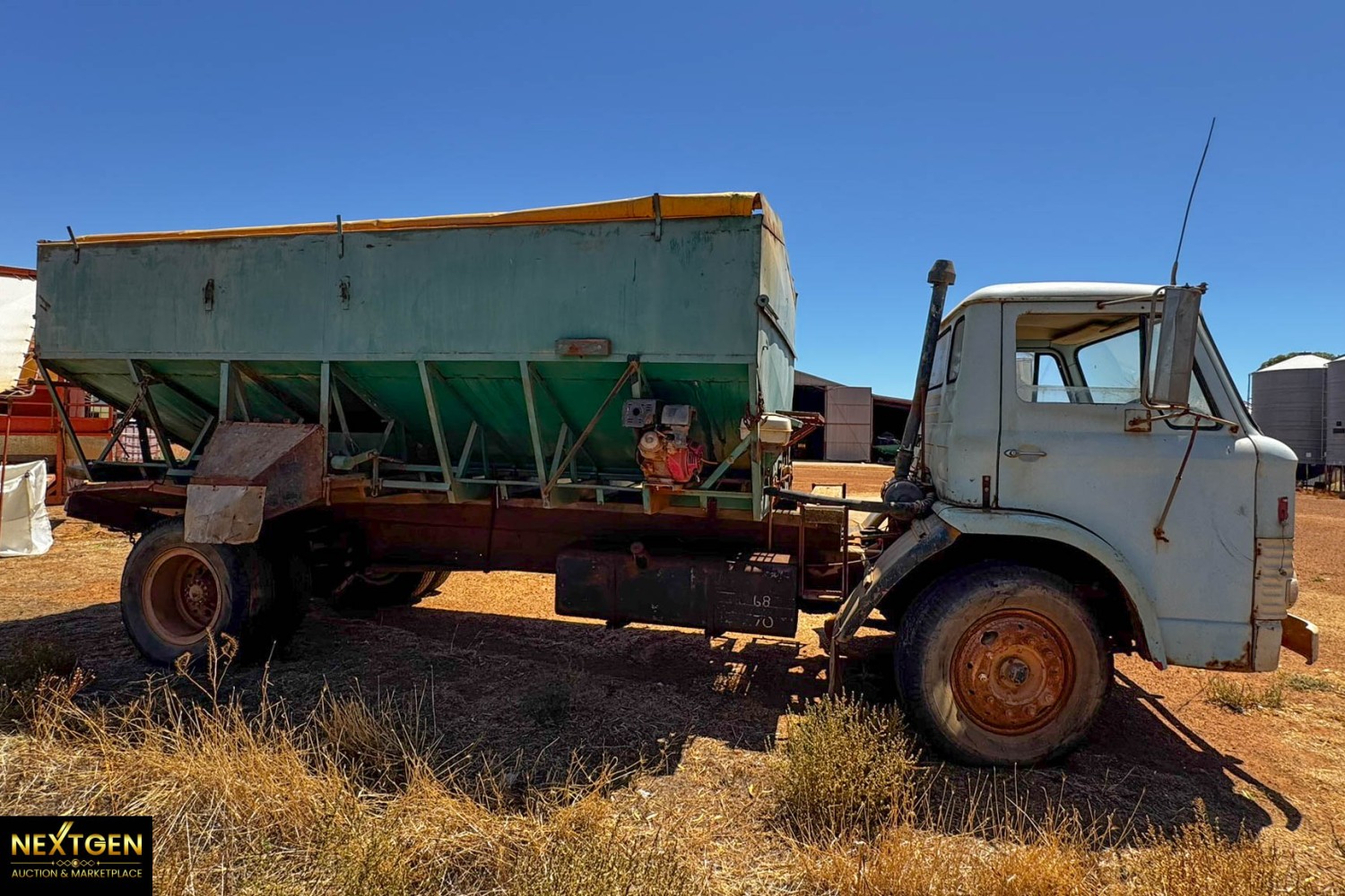 This D Series Ford Farm Truck, featuring a versatile 5-in-1 bin, is a reliable workhorse for any farm. While it needs a good clean and tidy up, the added bin is a valuable bonus for enhancing its utility. This truck is ready to serve a variety of tasks, making it a practical addition to your equipment lineup. Available through NextGen Auctions & Marketplace. ODOMETER 43549
