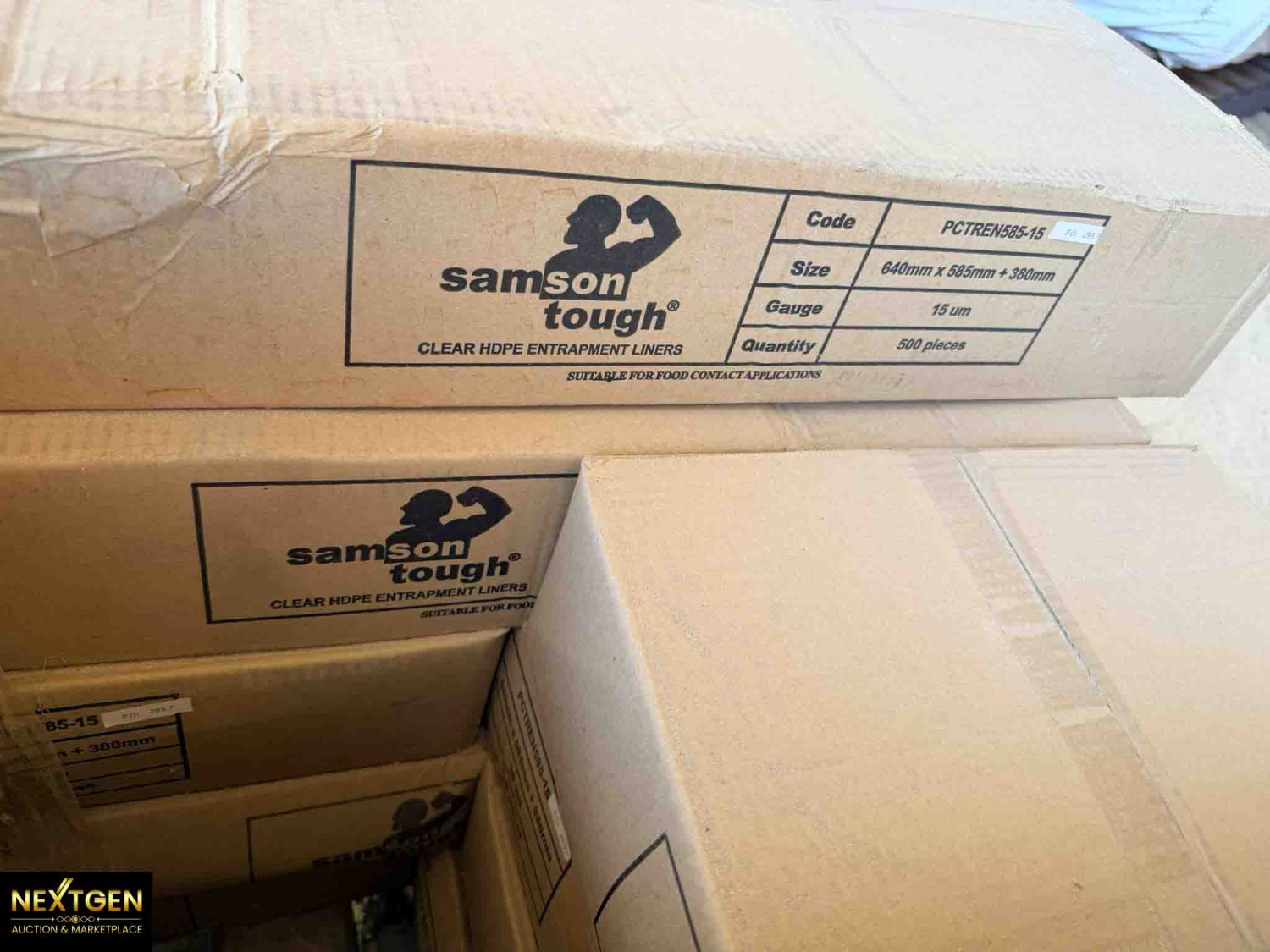 Pallet containing plastic bags - Samson Tough 640mmx585x380mm (15UM) 500 pieces per box.  Sold as Pallet lot.