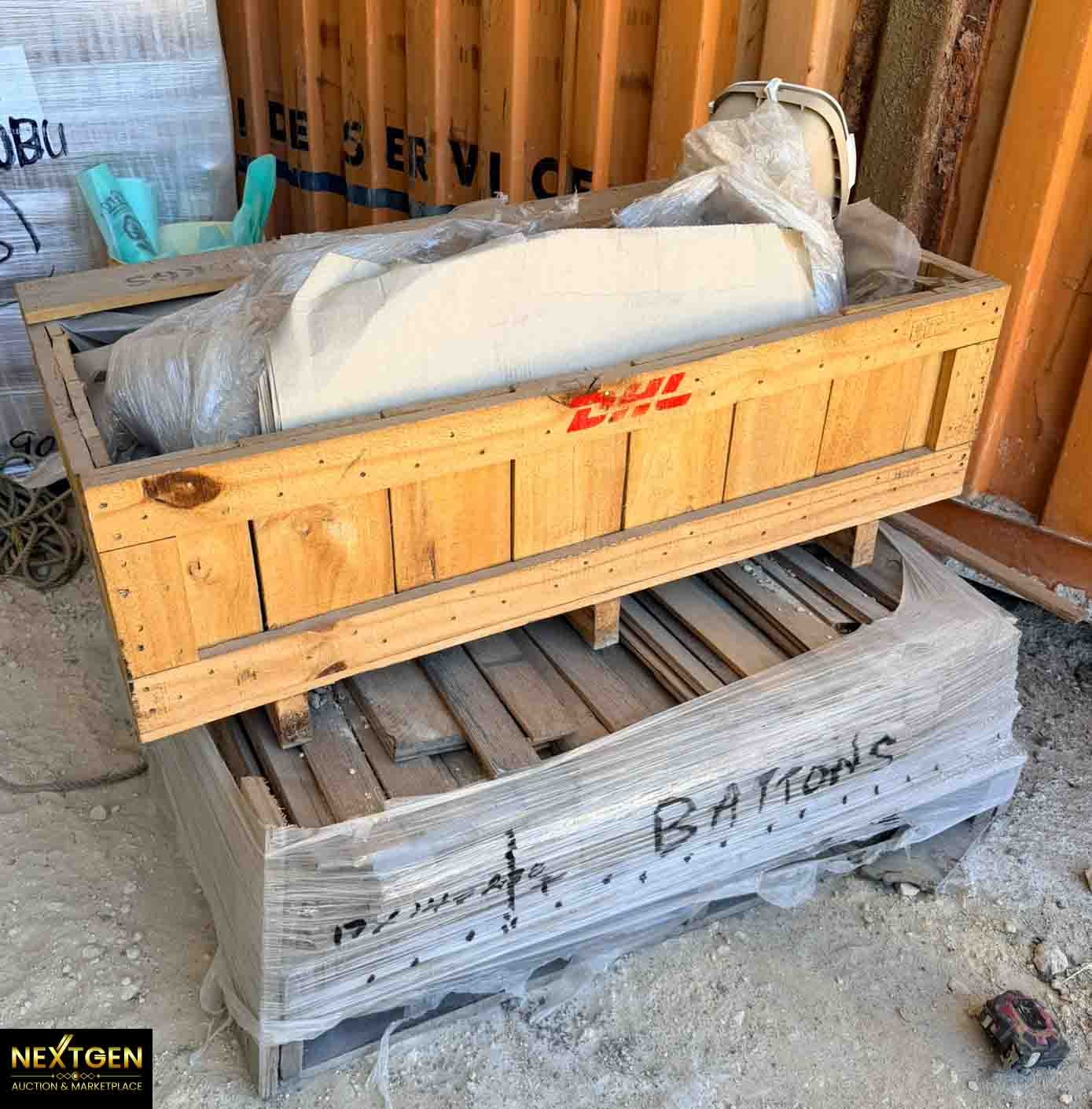 PALLET LOT OF WOODEN BATTERNS AND PLASTIC BAGS NG15